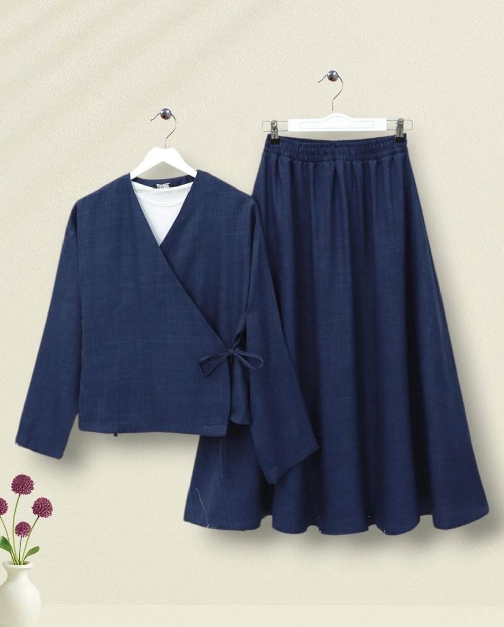 Etekli Keten Takım Lacivert