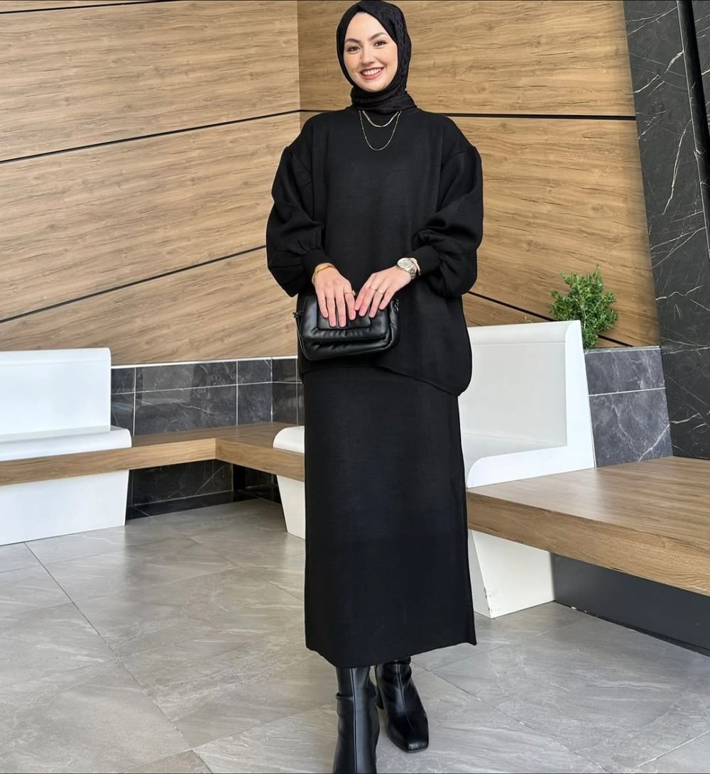 Etekli Triko Takım Siyah